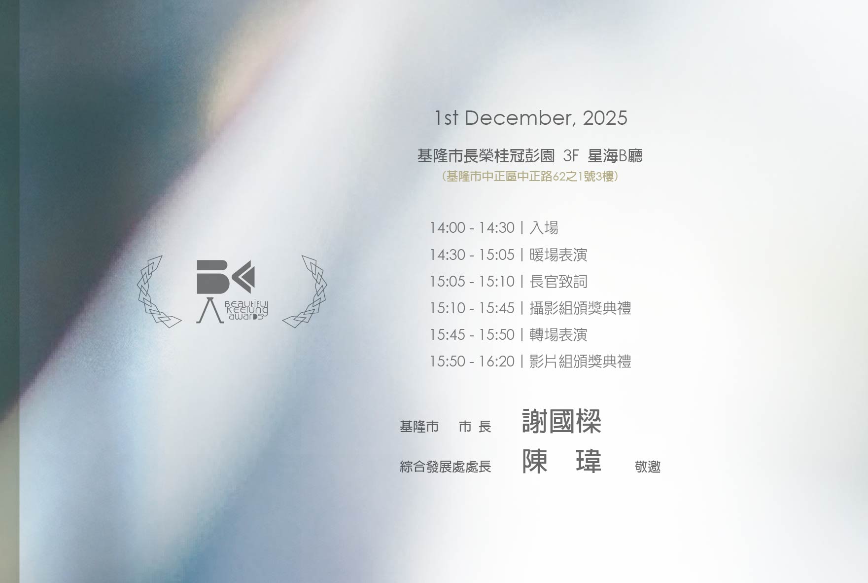 透過影像與攝影看見基隆的美與人文,美麗基隆影片/攝影創比賽活動之一【導演論壇會】,十九日在陽明海洋藝術博物館四樓舉行,邀請業界導演洪馬克與藝術大學多媒體動畫所教授陳建宏,展開深度對談,帶領觀眾一同探索創作靈感、技術應用與未來影像的發展趨勢。